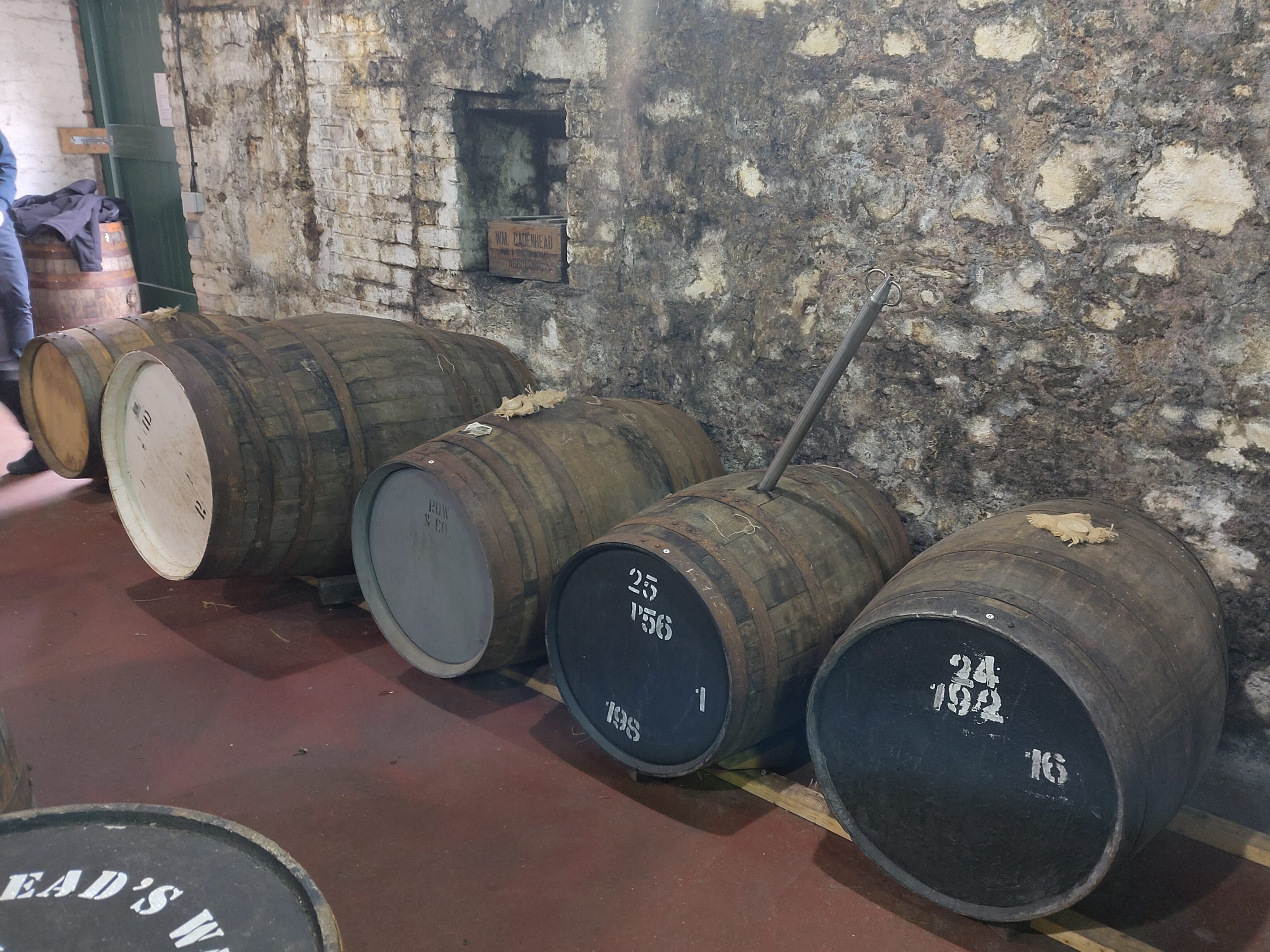 The Saturday morning was much quieter, helped by a gloomy weather: we cooked ourselves a big breakfast with eggs, bacon, and some bread. We then went for a (short) stroll, before going straight to the Cadenheadโs shop for our third tasting of the weekend: the Cadenheadโs Warehouse Tasting. We are almost veterans, having done it four (Teresa) and six (Gianluigi) times. Our host was Craig, and joining the tasting there were the two German guys weโd met the day before, and a group of five people (four guys and a lady) who were a tad too noisy, some clearly in hangover since the day before.