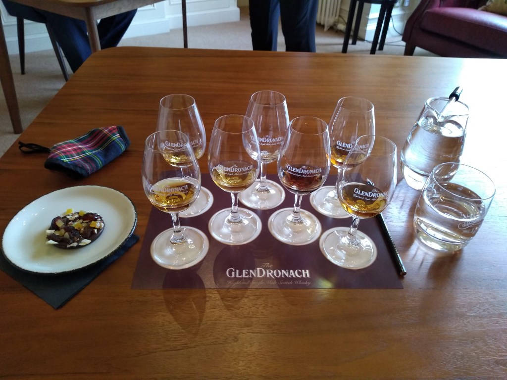 We drove back to Loch Lomond, but in the afternoon the day didn’t open up. At this point we had an idea: why don’t try to visit the Glengoyne Distillery? We called right away, and fortunately there were still a few spots for the last tasting of the day. Gianluigi had already visited the distillery during a field-trip of a 2018 scientific conference held in Glasgow, but being in a very big group the experience at the time wasn’t great. This time too, the tasting room was full, quite surprisingly considering the period. There were maybe around 15 people, however at very distanced tables with all safety measures in place. The quite generous tasting consisted in 50ml bottles, paired with chocolates. The drams were their flagship 10y, the 18y, and the Legacy Chapter II, a non-age statement matured mostly in ex-bourbon casks and bottled at 47%.