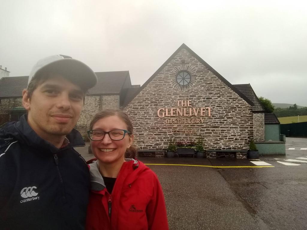Unfortunately, our first night ever sleeping in a campervan was not particularly resting, aided by an incessant rain pounding on the van’s top. Teresa waked up particularly nervous because this day was going to be the first time she drove on the left side of the road. However, we jumped in the van and the drive was (surprisingly) smooth until, just round a single-track corner, a behemoth of a distillery appeared: and here we are at Glenlivet!