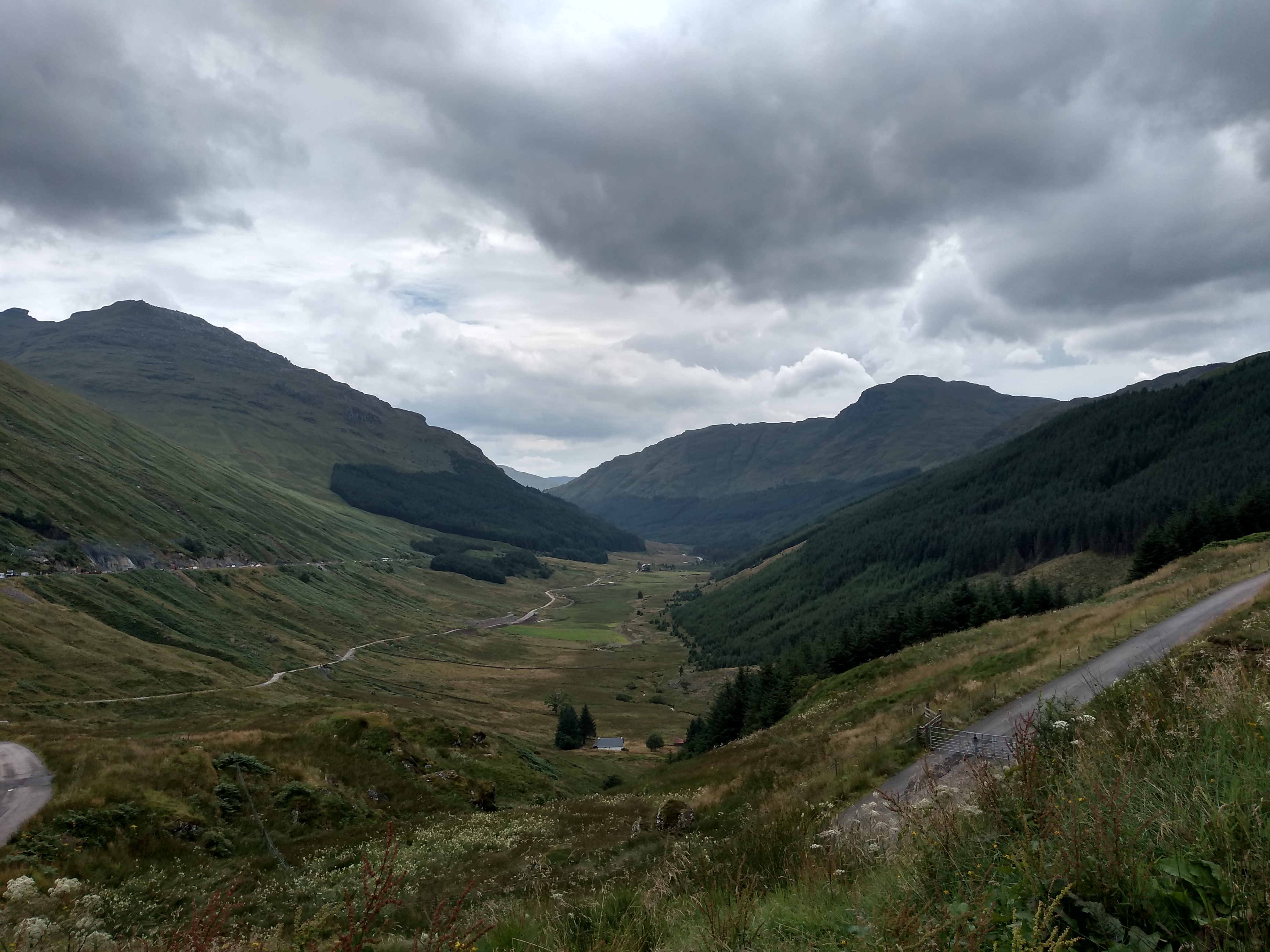 On day #9, the second to last day of our holiday, we weren’t as lucky with the weather as the day before. We drove towards Loch Lomond under a deep grey sky, and we only stopped for a coffee in Tarbert. Our intention was to spend a day at the lake, but with such a bad weather we decided to keep driving instead, direction Inveraray. The route was quite scenic, so after briefly visiting the village of Inveraray and walking around the castle, we headed back to the Loch Fyne Oysters restaurant to grab some (delicious) seafood to-go, and we had our lunch at the Rest and Be Thankful stop. This is a small but quite scenic picnic area on the A83 with benches to enjoy the landscape while having a snack. Still overcast, but truly breath-taking.