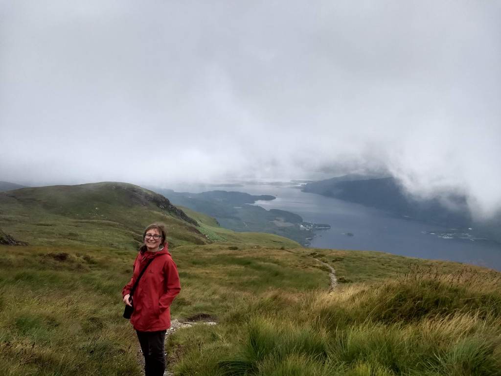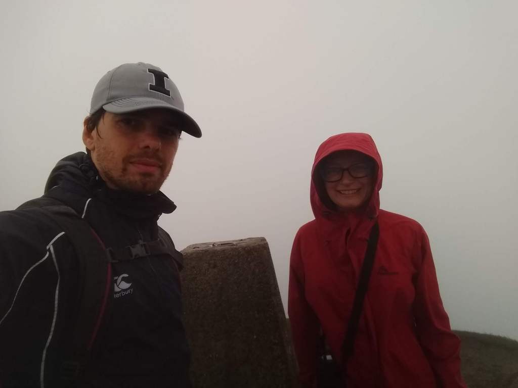 The last day of our holidays started early, around 6.30, because we had a great plan for the morning: climb Ben Lomond! So, after a quick breakfast at the van, we put our boots on and took the trail to the summit. The sky was very grey, and we hoped it would clear up a bit later. Spoiler alert: it did not. Actually, after the first couple of km, we got “inside” the clouds, so not only it was cold but also very wet. We took the less steep trail (“less steep” so to speak, because it’s still over 900m of ascent in less than 7k, compared to the other one which is about a km shorter). Despite the harsh climb and the terrible weather, we got to the summit, just to admire the whitest of the view: it looked like we were on Solaris!