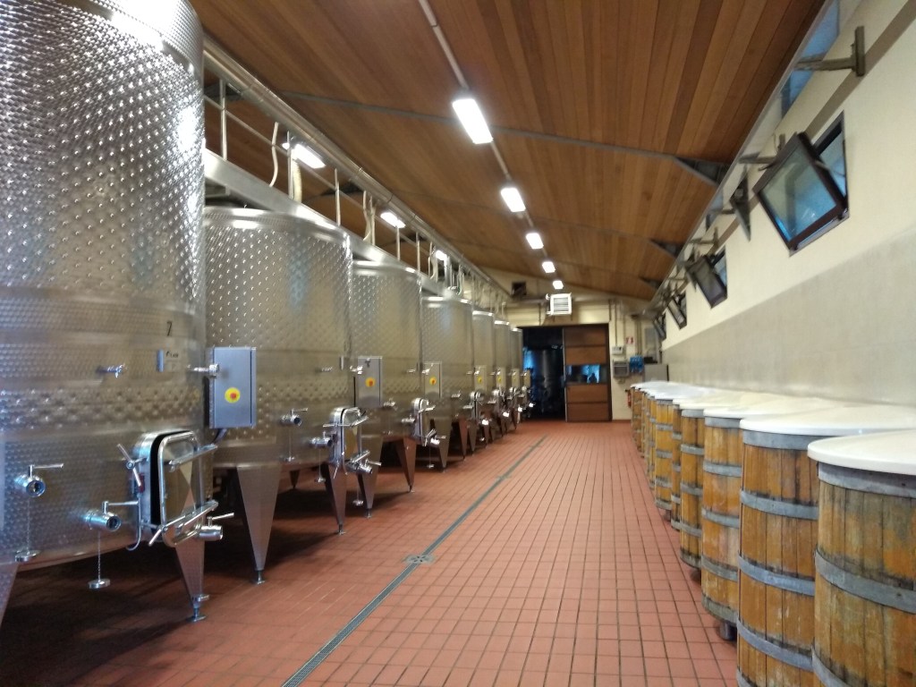After the introduction, we moved to the main production building. They harvest several grapes: Cabernet-Sauvignon (which is the main component of their red wines), Cabernet-Franc, Sangiovese, Merlot and Vermentino. Grapes are mechanically soft-pressed and cleaned to get the must, which is fermented in two types of vessel: metal big tanks or wooden 500 litres open vats (which smell great!). Then, we visited the cellar, where the casks are stored, divided by vintage. All casks are from the Taransaud tonnellerie (cooperage) and are of course made of French oak (Quercus robur)…the smell down there was amazing too! We could also take a look at what Michela called “the library”, where all the vintage bottles (starting from the early 80s) are stored. They use the casks up to four times, before selling them to other smaller wineries or to distilleries to make awesome whiskies (like the GlenAllachie). The vinaccia (leftover of the wine production) is sent to a distillery in Veneto region to produce Grattamacco grappa, and they also grow olives to produce olive oil.
