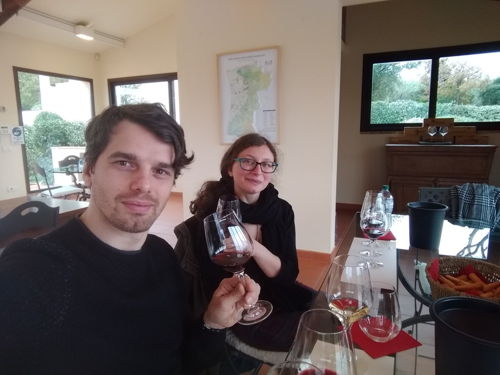 So there we go! We booked a tour, took the car and drove! We left Florence quite early and after a quick stop for gas and to allow Gianluigi a second breakfast with a delicious pistachio custard croissant, we were on our way to discover a new place! The ride was almost two hours but quite smooth, in fact we arrived early. We thought about taking a walk, but after realising how frickin’ cold it was, we just rang the winery’s bell.