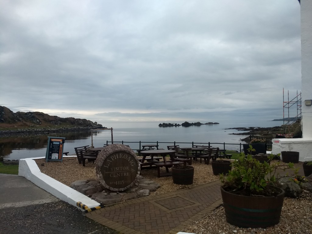 We were super-excited about visiting Laphroaig: it is one of the first malts we remember having and buying, a few years back, and its peat was one of the things that hooked us up to single malt. Even now, despite not connecting with all expressions, it still has a special place. The distillery layout looked very old, with the visitor centre door right next to a beach – really pretty.