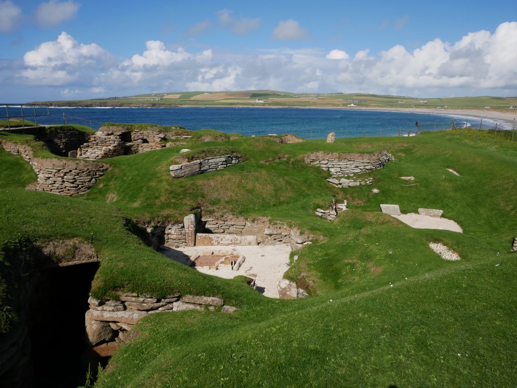 Around lunch, we moved on to Skara Brae. This is one of the sites we liked the most in Scotland, so far. Reading about the discovery of this 5,000-year old village was very interesting, as well as finding out about all the insights on the life of our ancestors. Being a nice day, we also took advantage of the splendid view on the beach just behind the site. After our visit, we drove first to the nearby Orkney brewery, not in time to enjoy a beer there but still in time to buy some for dinner. This was after a stop at Birsay beach, where the splendid landscape was saddened by the presence of a half-dozen dead seabirds: avian flu striking again. Back at the camping, it was grilling time! The only thing we did not account for was the number of midges assaulting us: the food intake was barely enough to compensate for the blood loss (sorry, we like to be dramatic…)!