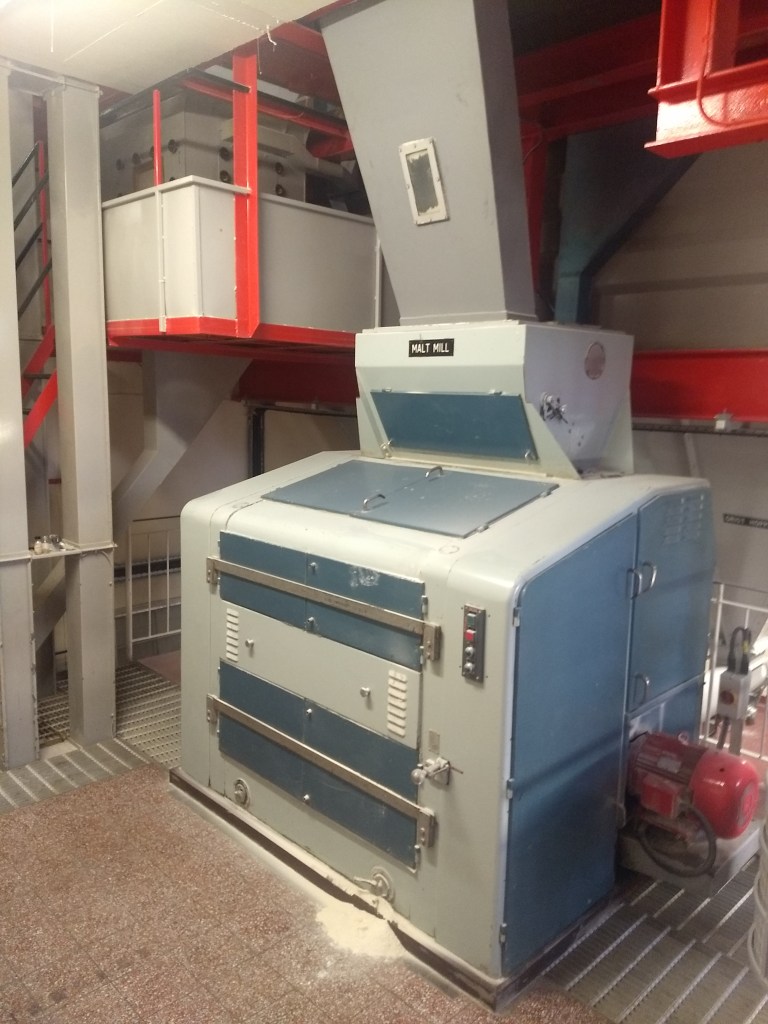 The guide of the day, Rosie, started the tour in the milling room, where barley is grinded into grist (with a usual component of 10% of flour and 20% of husk), in this case by Milly the mill, a more modern looking machine than the usual Porteus ones.