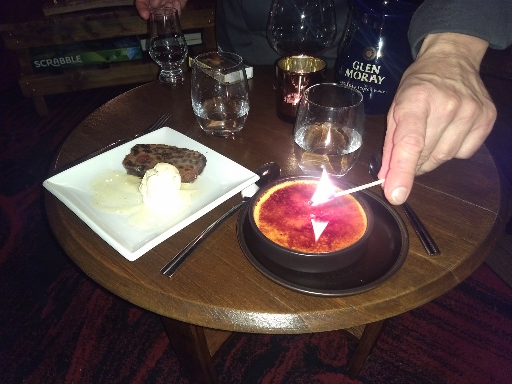 After the run we had a well-deserved early dinner at the local French restaurant, the Seven Stills: it was truly great, yummy food and delicious wine. As a dessert, Gianluigi had a crème brulée, with the French chef coming to the table to light it on: bravo!