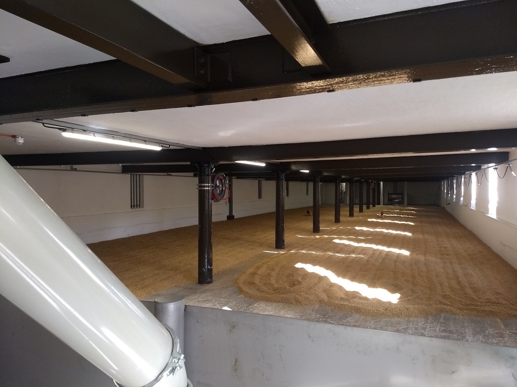Our guide Iona started the tour from the new malting floor, one of the parts under renovation the previous year. There was one originally, but it was dismissed back in the day when industrial maltings became too convenient to be ignored. This happened across the entire industry, so that now only a handful of distilleries malt their own barley in a malting floor (Benriach, Balvenie, Kilchoman, Laphroaig, Bowmore), and to our knowledge, only Springbank/Kilkerran do it for the 100% of their production (waiting for Dunphail), so bravo Glen Garioch! They also re-introduced the use of peat in their kiln, to get peated malt from time to time.