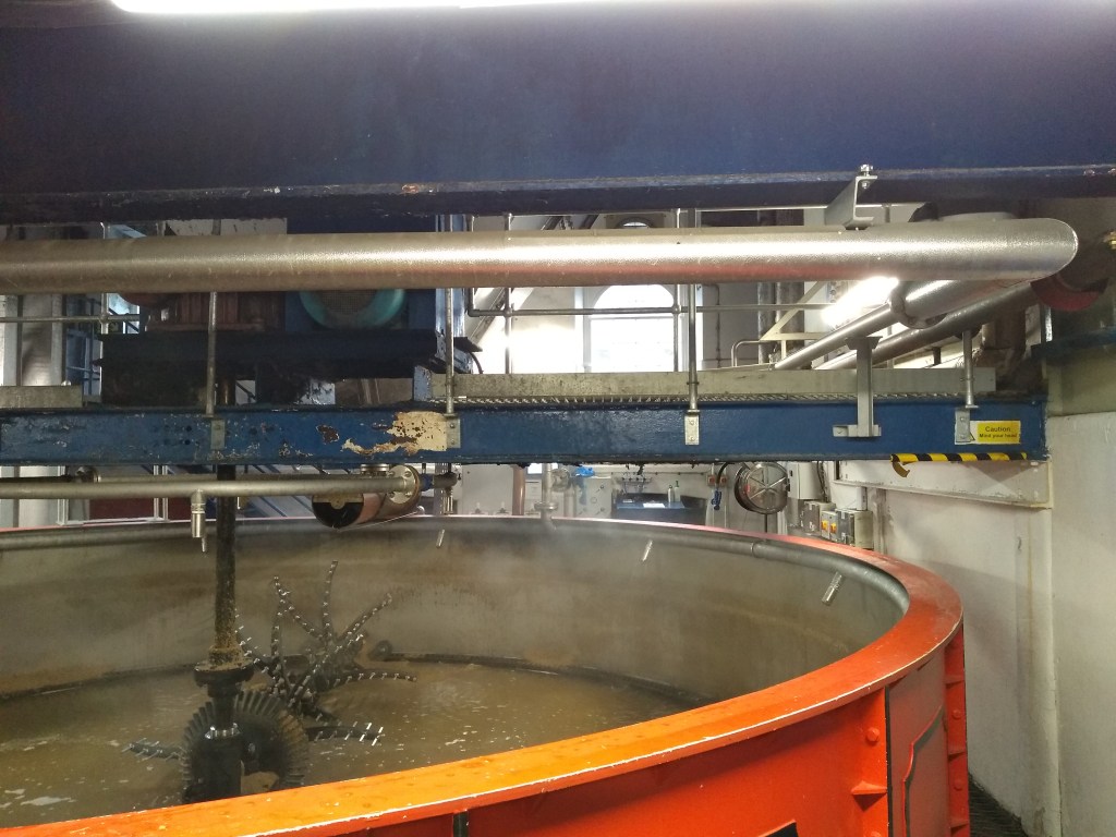 This time we paid more attention to the open mashtun and to one interesting characteristic: there is only one receiver where low wines, foreshots, and feints mix together. For the non-geeks: the low wines are the result of the first distillation (usually around 20%abv) in the wash still. The second distillation, in the spirit still, is what produces the new make spirit, which will be put into cask and matured. However, not all the product is kept, only the middle part (or โheartโ). At Deanston, it is taken between the abv of 75% and 67% (the โcutsโ or โcut pointsโ). The foreshot (or โheadโ) is the first part of the distillation which contains a lot of methanol so no good for drinking, while the feints (or โtailโ) are the end of the second distillation, too low in abv and containing some undesirable compounds. These two donโt go to waste, they are distilled again. At Deanston, they mix it with the next batch of low wines, and the receiver tank never goes empty: according to their master distiller, this is the reason why the spirit is so waxy. Very fascinating.