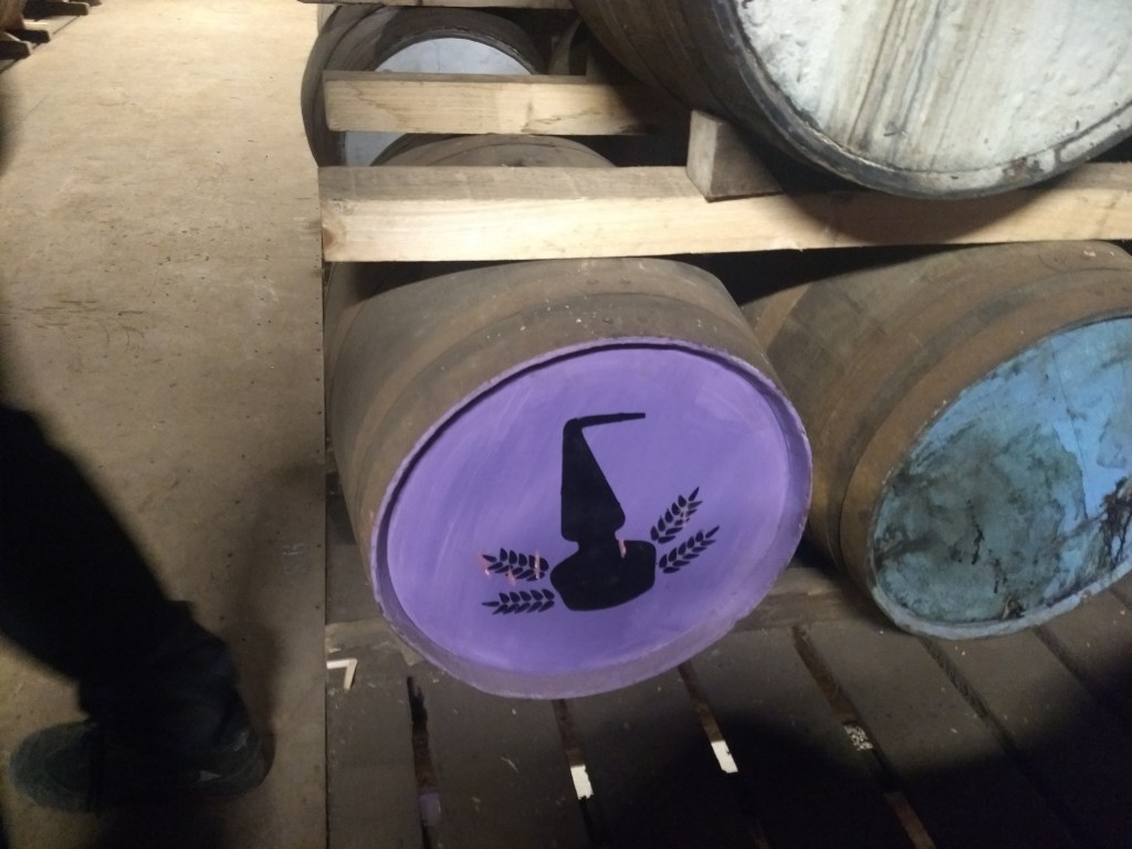 We came out from the distillery quite satisfied, had lunch at a nice café nearby, and after a bit the bus picked us up in the village. The next stop was the now not operational distillery of Coleburn, on the road between Rothes and Elgin. The former distillery’s warehouse is now used by the good folks at Murray McDavid (independent bottler) to store some of their casks. So of course, we were going to do a warehouse tasting, hurray! This is the same type of experience they offer during the Spirit of Speyside festival (by the way, if you look at the picture on the festival webpage, that’s us in the photo in the orange vests!).