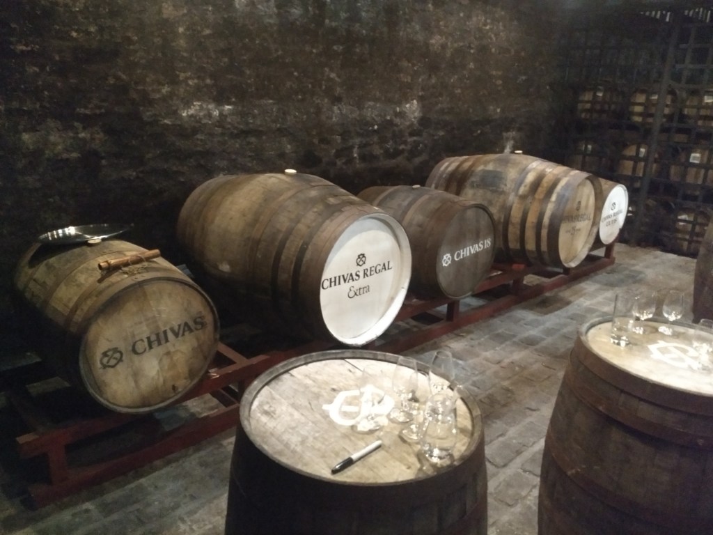 Back on the bus, we only had time to grab a meal deal at a big Tesco on the way to our next destination, Strathisla! As we arrived, we remembered how beautiful it was, one of the prettiest distilleries in our opinion. This time we didn’t do a tour (which we had already done it in 2019, together with a blending experience), but a tasting of Chivas Regal, in the warehouse number 3.