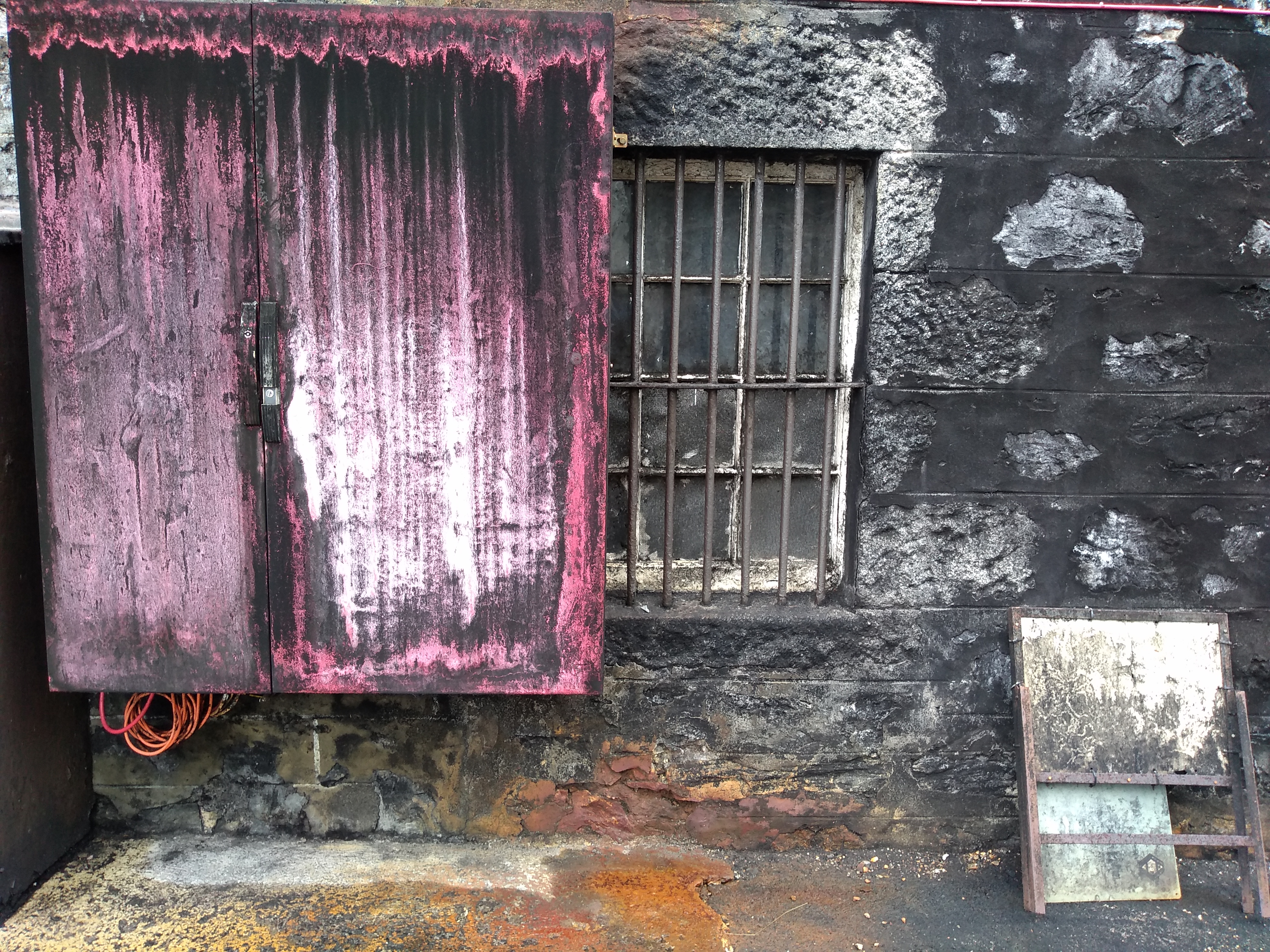On Sunday morning the sky was still overcast, it would start raining later in the day eventually. Oh well. After breakfast we wrapped up all our stuff: it was the last night in the camping, the following and last night of the holiday we would wild camp again, although we hadn’t figured out where yet. We left the camping driving towards Dufftown, in a backroad that goes past the back of the Speyside Cooperage, from which you can admire their casks pyramids. Being Sunday morning, Dufftown was very quiet, and not all cafes were open yet. We managed to park on the main road, in front of the local CoOp, and tried hunting for a coffee. After finding one, we walked our way towards our first appointment of the day: Mortlach distillery, the so-called beast of Dufftown.