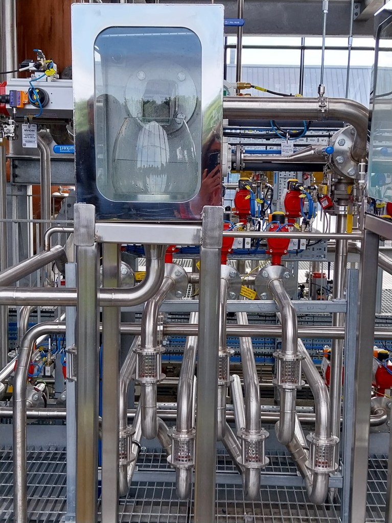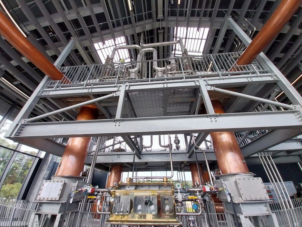 We then took a look at the mill room, a very large space with a very modern mill, which we expected as the site has been totally rebuilt (so no Porteous here!). Back to the main production room, we were right in front of the mashtun: a stainless-steel big baby, semi-Leuter, with a shiny lid.