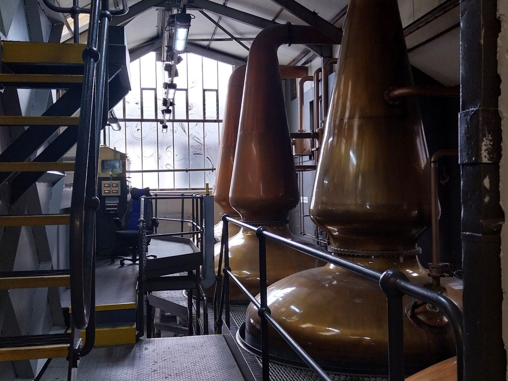 Anyway, once in Craighouse, we parked the vans in a nice spot Justine had found, behind a multipurpose warehouse (including the Deer Island Rum distillery, closed unfortunately) and next to an old pier. A great spot, quiet and with some tables and benches too… just a shame that as soon as the wind calmed down, midges appeared to torment us. We just had time to walk to the Antlers Bistro for a coffee before going to Jura distillery for the tour.