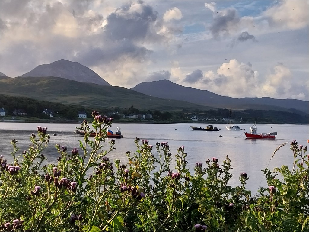 After the distillery we went for dinner at the Jura Hotel. Our attempt to enjoy a pre-dinner pint outside lasted about 3 minutes, before the midges swarmed and made us run for a table inside. We had good time, good food, tasty pints and, worth noting, we found very clean bathrooms and strong Wi-Fi too! We soon retired to our campervans, to enjoy a last dram before a good night sleep (no wind this time!).