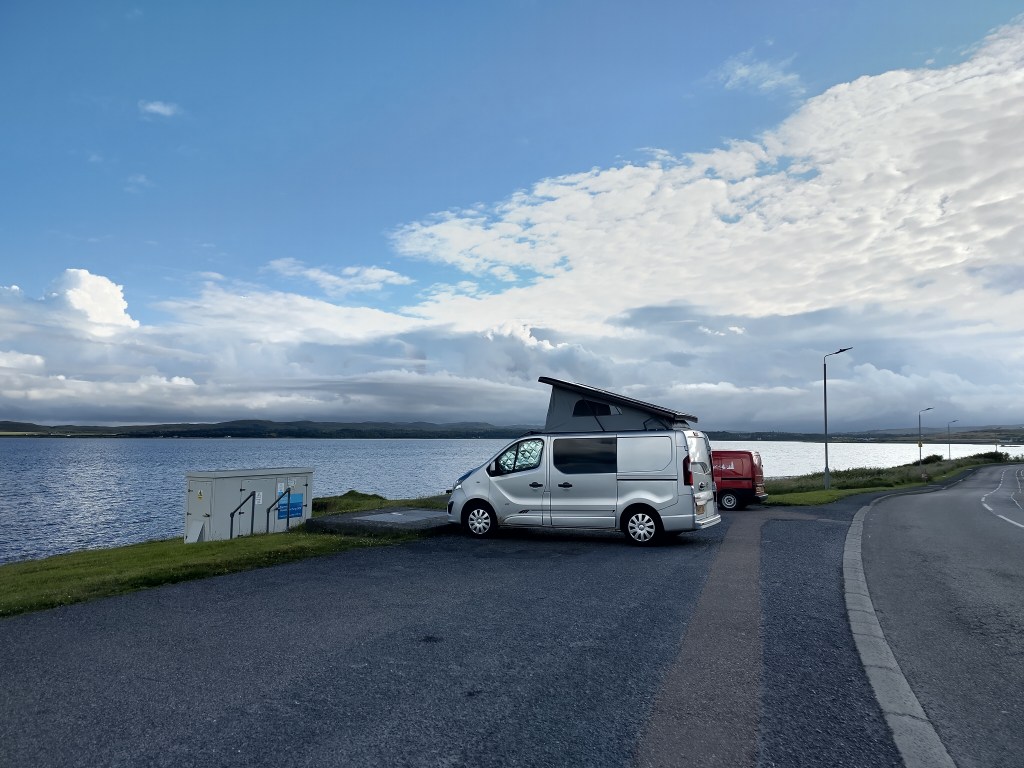 As usual, we woke up very early when the morning light entered Mr Vantastic. We stayed in bed and, somehow, we managed to sleep a bit longer. When we finally woke up, Justine was already up, and offered us some food. Despite being parked on the main road connecting Bowmore to Bridgend, the vehicles noise had not bothered us. We actually felt rested. We took turns to go to the public restrooms at the Bowmore square, and Gianluigi took advantage of his โ€œtripโ€ to stop at the Co-Op for some fruit and croissants.