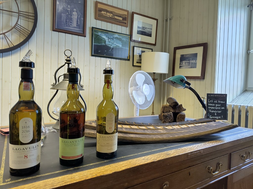 After a brief stop at the beautiful pier, we went back to the visitor centre for the tasting. The first dram was Lagavulin 8y (48%): as the 16y became more expensive in the last few years, this one became more and more prevalent, now available in supermarkets as well. We had a bottle at Teresaโ€™s mother house, it is a solid dram, matured in ex-bourbon casks from the Bulleit distillery. Next up, the Distillers Edition: like the other ones in this series, it is finished in fortified wine casks, Pedro Ximรฉnex sherry for this one. The Distillers Edition used to have a vintage year, but apparently itโ€™s disappearing: Alice told us this one is around 14 years of age. As predictable, this was a sweet and decadent take on Lagavulin. Finally, a surprise: the Feis Ile 2024 edition. This year they released a heavily peated (55 ppm instead of 35) malt, aged for 10 years in refill bourbon casks: delicious smokiness, a shame it was so expensive (ยฃ175). We were also surprised by how they aligned the price of older Lagavulin 12 cask strength editions (2020 and 2021 for sure) to the most recent releases: they were all ยฃ150, for some a jump of ยฃ20 compared to the RRP at release!