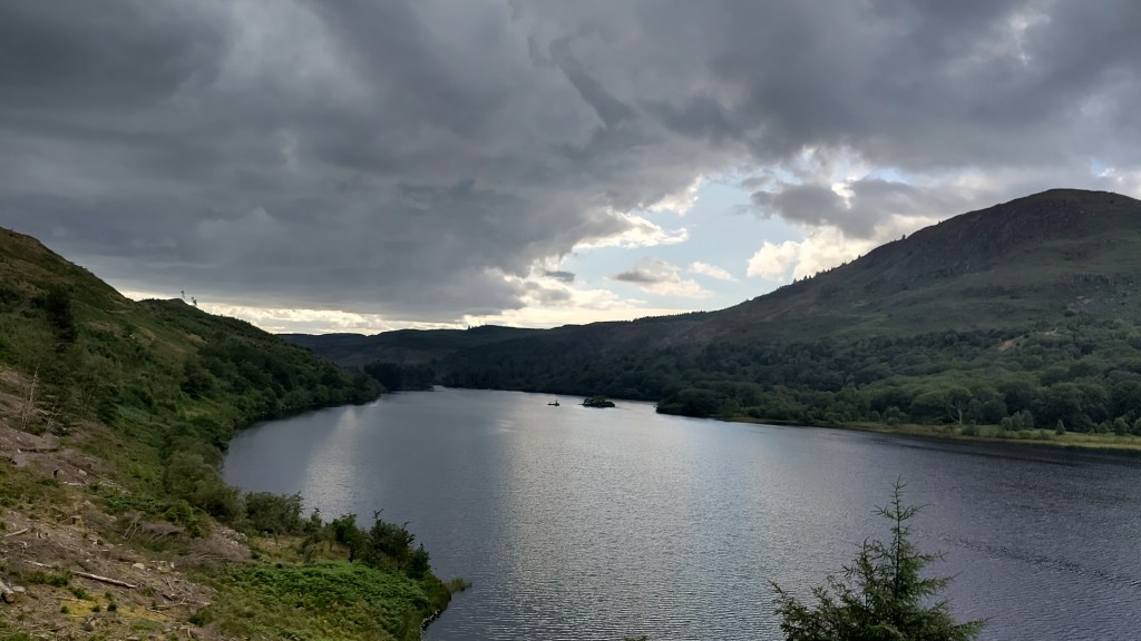 After the distillery, it was time to catch up our hike at Loch Trool. It was just a 30-minute drive from the distillery, so in less than an hour we were already on the path that loops around the Loch. Despite the car park being almost full, the path was not at all busy, so it ended up being a quiet walk. After the first bit, mostly inside a forest, the path opened up and the view on the loch was quite spectacular. It only rained for a few minutes, luckily so, as we were in the middle of the almost 11k walk when it happened!