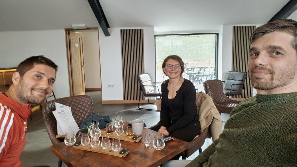 As opposed to the sunny Saturday, Sunday was rainy and miserable. After breakfast, we went to the Glenallachie distillery under a heavy rain, to try some drams at the new distillery bar! Our friend Sue, who works there as a tour guide, gave us great recommendations, and we had a great time. She also kindly offered Teresa some coffee, as she was on driving duties (*sad trumpet*…but we got some drams for her to enjoy home).