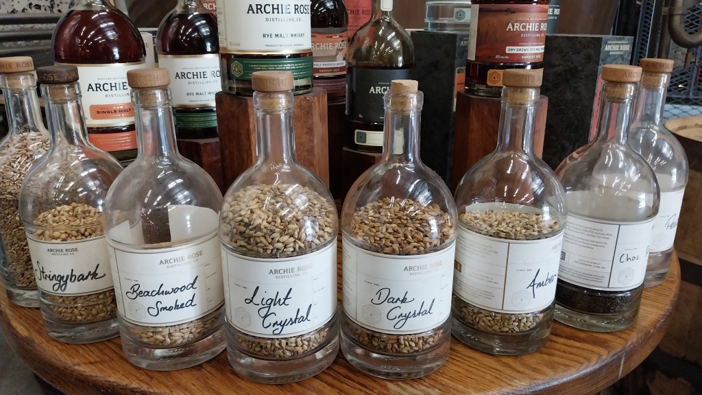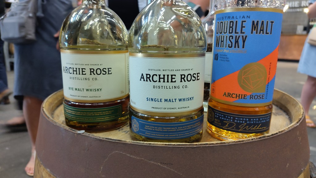 After the tour of production, it was time for the tasting: Starward was one of the few Australian whiskies weโd tried before this trip. Specifically, we’d tried the Fortis, thanks to our subscription to Whisky Me. The tasting started with a blended whisky, the Two-Fold (they have another one, Honeycomb). For this blend of wheat and malted barley, they source the wheat newmake spirit from elsewhere, and they mature it on site. Itโs a very basic offering, mostly marketed as a cocktail component, but we found it punchy above its weight, considering it is bottled at 40%, and unexpectedly oily. The second dram was the Nova, matured in ex-red wine casks (French oak) and bottled at 41%. It was our least favourite. Finally, we tried the 100 Proof (name coming from its abv of 50%, so American proof), matured in American oak ex-Pinot Noir casks: this one was delicious, with creamy and red fruits notes, and not too tannic (although, compared to the average single malt drinker, our tolerance for tannins is probably much higherโฆWe โblameโ our Italian upbringing).