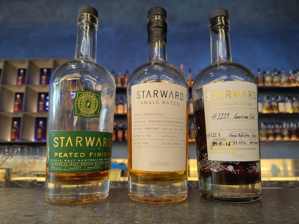 By the time the tasting ended their kitchen was closed, but we decided to stay at the bar anyway to try more expressions – not only bottlings available to purchase, but also curiosities and the odd ones. Here, we found the highest abv whisky we ever tried: 73.45%, first fill American oak red wine. Almost like chewing wood, but some water tamed it, and it was delicious. We also tried some of their peated cask finished whiskies, but not the Lagavulin edition whose price carried a premium: $199, compared to the $149 for another undisclosed Islay distillery, we’ll leave you to guess which (just remember who partially owns Starward…). The dram was good, but it didn’t blow our socks off. Another we tried was the Yering Station Pinot Noir finish (the same winery we’d visited that same morning). This one was tasty, but with a similar profile to the 100 Proof. We also tried the Munich malt whisky, the Botryties matured (Australian “sauternes”), the Shiraz octave cask finish, and finally, the one we liked the most: one matured in a single American oak barrel, previously holding red wine. Really delicious, a shame it wasn’t on sale.