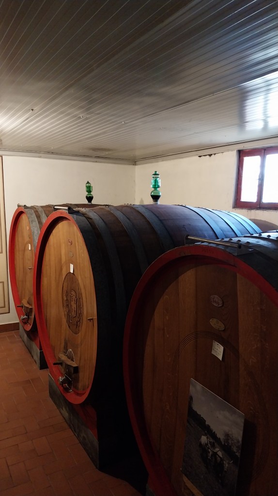 The tour started in the shop, from which we could access the historical cellar, a series of connected rooms full of big barrels for fermentation and maturation. Interestingly, these barrels had a ‘tappo colmatore’ on top, a Leonardo Da Vinci invention, a lid to verify the level of liquid in the barrel and to allow the release of gas that might generate during maturation.