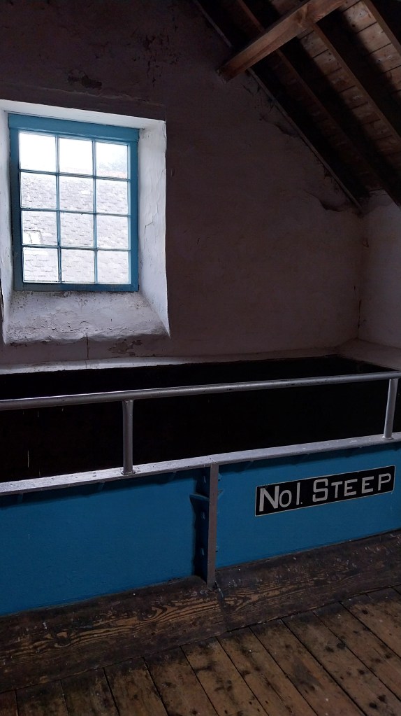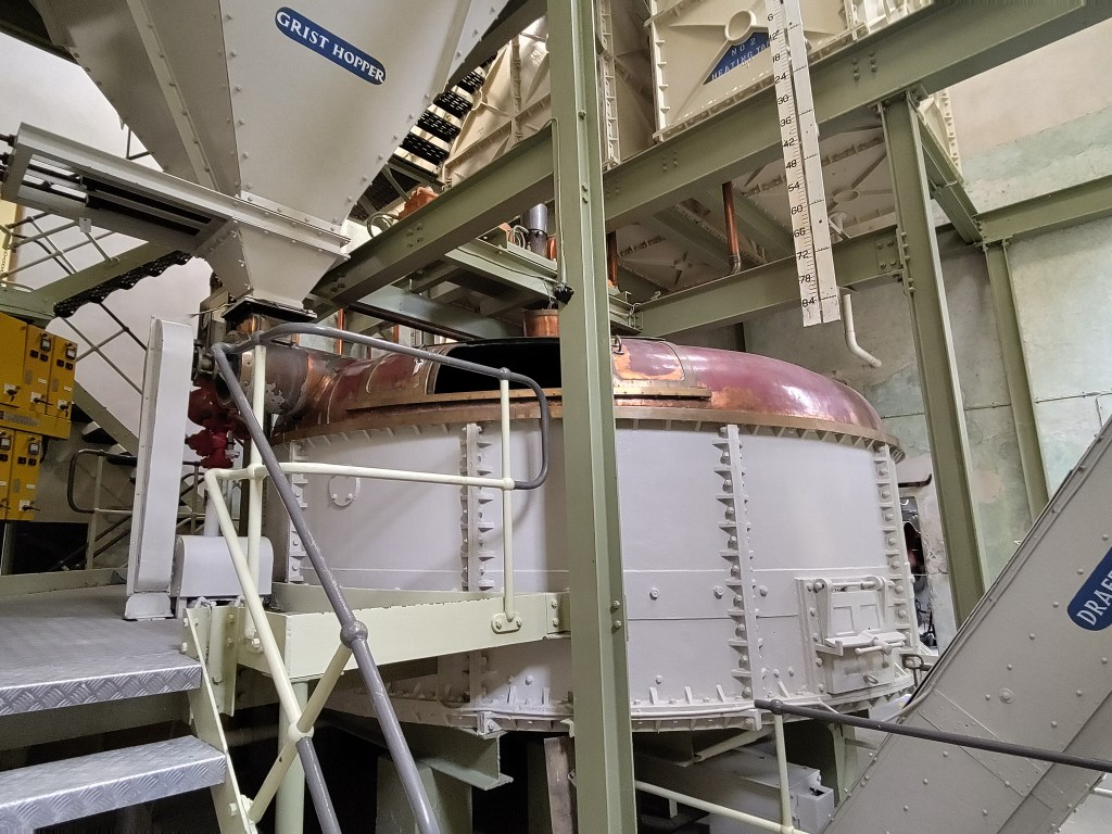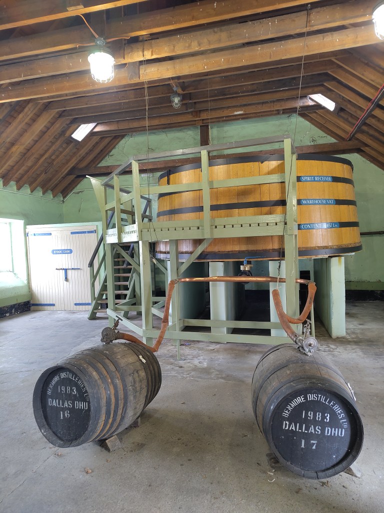 Back at Dallas Dhu: the Saturday was their open day, so the staff were understandably a bit tired on the Sunday. Nevertheless, Dean gave us a great and very detailed tour, which lasted longer than the scheduled time. The distillery was founded in 1898 by Alexander Edward and started production in 1899, originally as Dallasmore (later changed to Dallas Dhu to avoid confusion with other brands). It closed during WWI, and again in 1930 for 6 years. In 1939 it was partially destroyed by a fire, and it resumed production only in 1947, until 1983 when it was closed. In-house malting was stopped before then, in 1958, although the current steeping tank was only fitted in the 1950s, around the time also electricity was fitted in. The distillery was finally sold to Historic Environment Scotland in 1986, which turned it into a museum. Because this happened shortly after ceasing production, the distillery is incredibly well preserved, and it looks like it could resume production anytime (which it couldnโ€™t, of course). In recent years, Murray McDavid bought it. This was after an initial attempt to buy Parkmore, which failed because of the non-availability of the nearby warehouses. They are now in the process of finalising the deal with Diageo (which still owns the Dallas Dhu brand), and to get ready to restart production (although works havenโ€™t started yet).