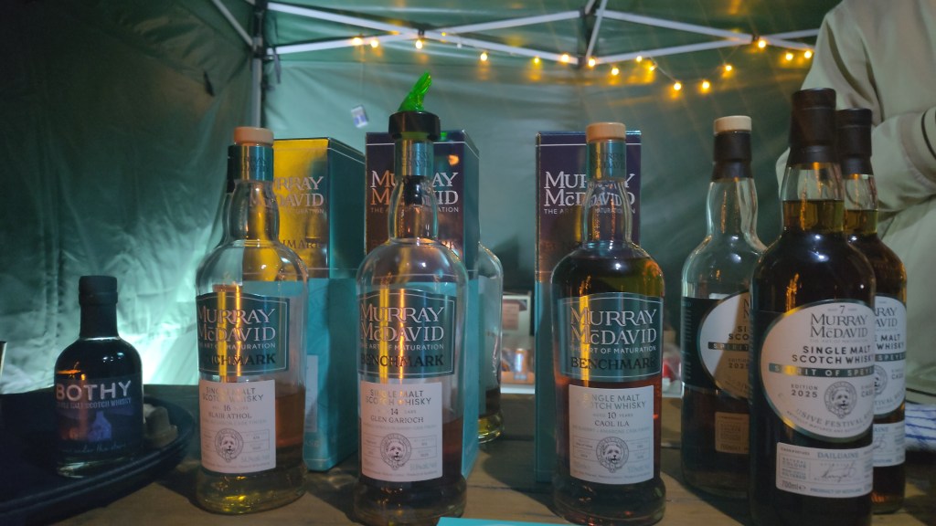 The first dram was The Bothy, specifically bottled (in 20cl bottles) for the event: a young sherried Speyside single malt (46% abv). The other drams were a 15y Blair Athol (54.2%, finished in Koval ex-bourbon casks), a 14y Glen Garioch (51.6%, ex-PX cask finish), a 10y Caol Ila (53.1%, ex-Amarone and PX Sherry cask finish) and finally the MMcD Spirit of Speyside 2025 release (Dailuaine, 7y, ex-Oloroso cask, 57.8%). Overall, a great, chilled out event that weโ€™d definitely like to repeat.