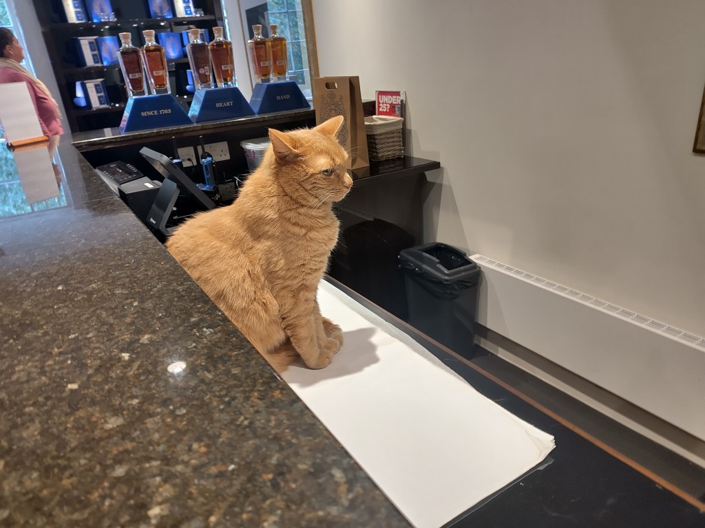 There is also a fine dining restaurant with two Michelin stars, and a Lalique boutique behind the visitorโ€™s centre shop. However, production remained very much traditional, as shown to us by our guide Alan: he looked somehow familiar, but we couldnโ€™t really place him exactly. After the introduction (held in what used to be the malting floor), he explained the recent history of the distillery and how it is the oldest in Scotland as it dates back to 1763. Apparently, this came to a surprise as the previous understood founding date was 1775: in any case, things must have changed quite a bit. What didnโ€™t change is the presence of cats: during the tour we spotted a couple of them, apparently not trying very hard to fill Towserโ€™s shoes.