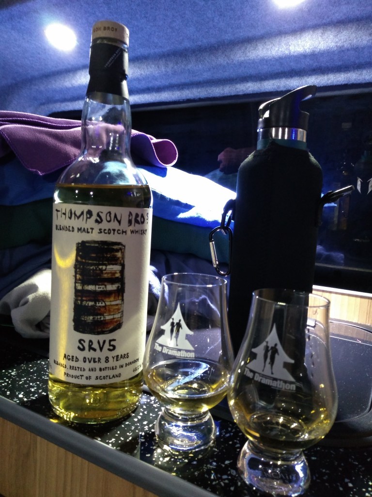 When the day came, we left very early in the morning, mostly to avoid the traffic outgoing the city (one of the few down sides of leaving in Leith, it takes 30-40 minutes to leave the city independently of where we want to go). There wasnโt much traffic on route, and once arrived in Perth, instead of following the A9, we drove straight up through the Cairngorms, always gifting nice views. The first appointment in this trip was in the village of Tomnavoulin, of course at the Tamnavulin distillery. This one, at the moment, is only open during the festival, they donโt have a bar nor shop nor visitor centre. So, because we were half-hour early, we kept driving towards Glenlivet distillery, to have a peek at nearby Blairfindy Castle. One day weโll have a rant about the loose definition of โcastleโ in Scotland, but this one looked nice enough (a very small one, it wasnโt possible to enter). Because it started raining (of course), we quickly went back to the van and drove back to Tamnavulin.